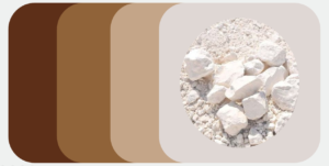Este mineral arcilloso presenta un aspecto terroso árido, desde la antigüedad se cree que el caolín es símbolo de trabajo y dedicación cultural por ser un mineral multifuncional, por lo que este color representa sensaciones de naturalidad, de un hogar cálido sin perder de lado la formalidad.